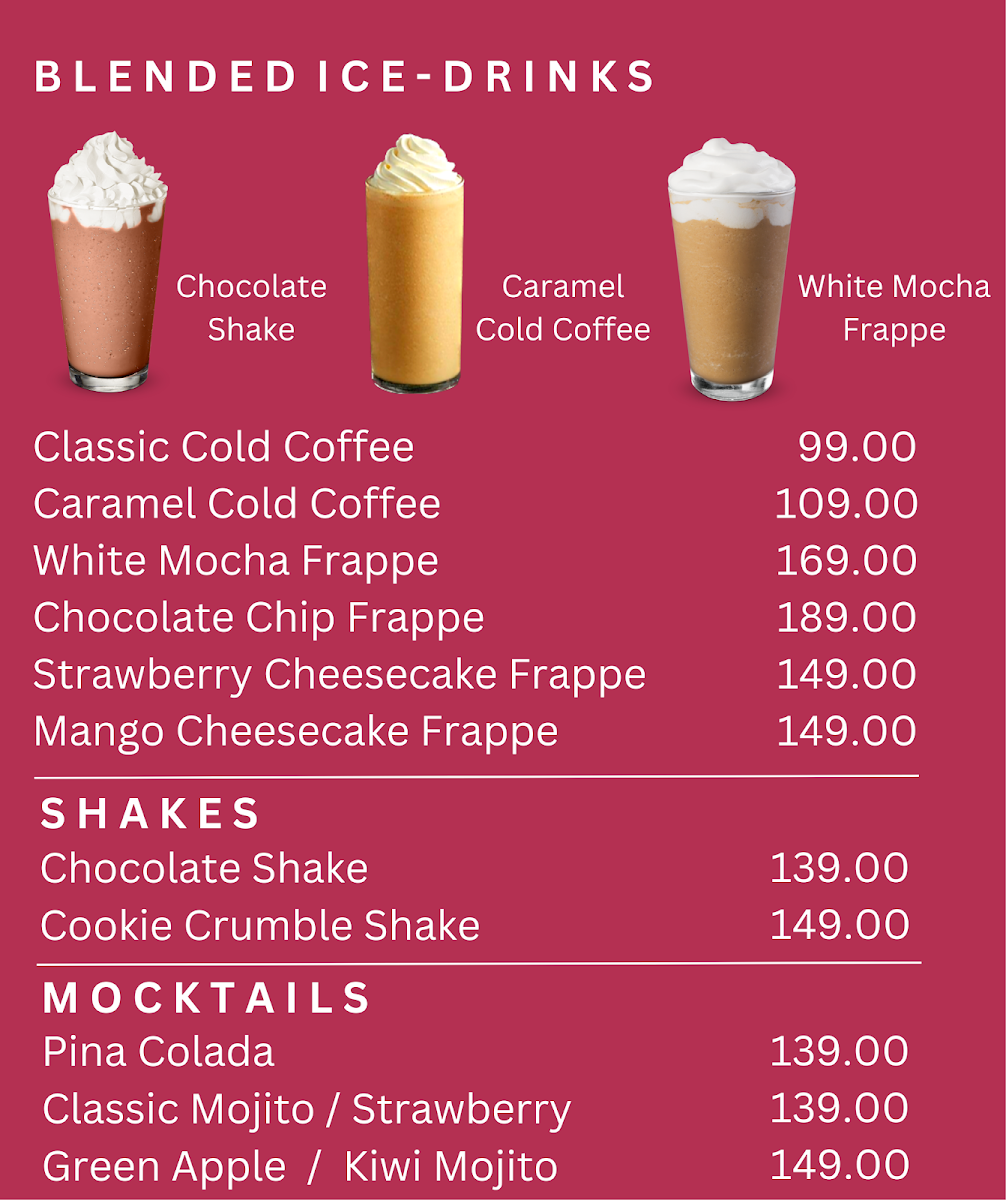 Mango syrup combined with light cream cheese styled sauce, milk, blended with ice. A coffee-free delight
